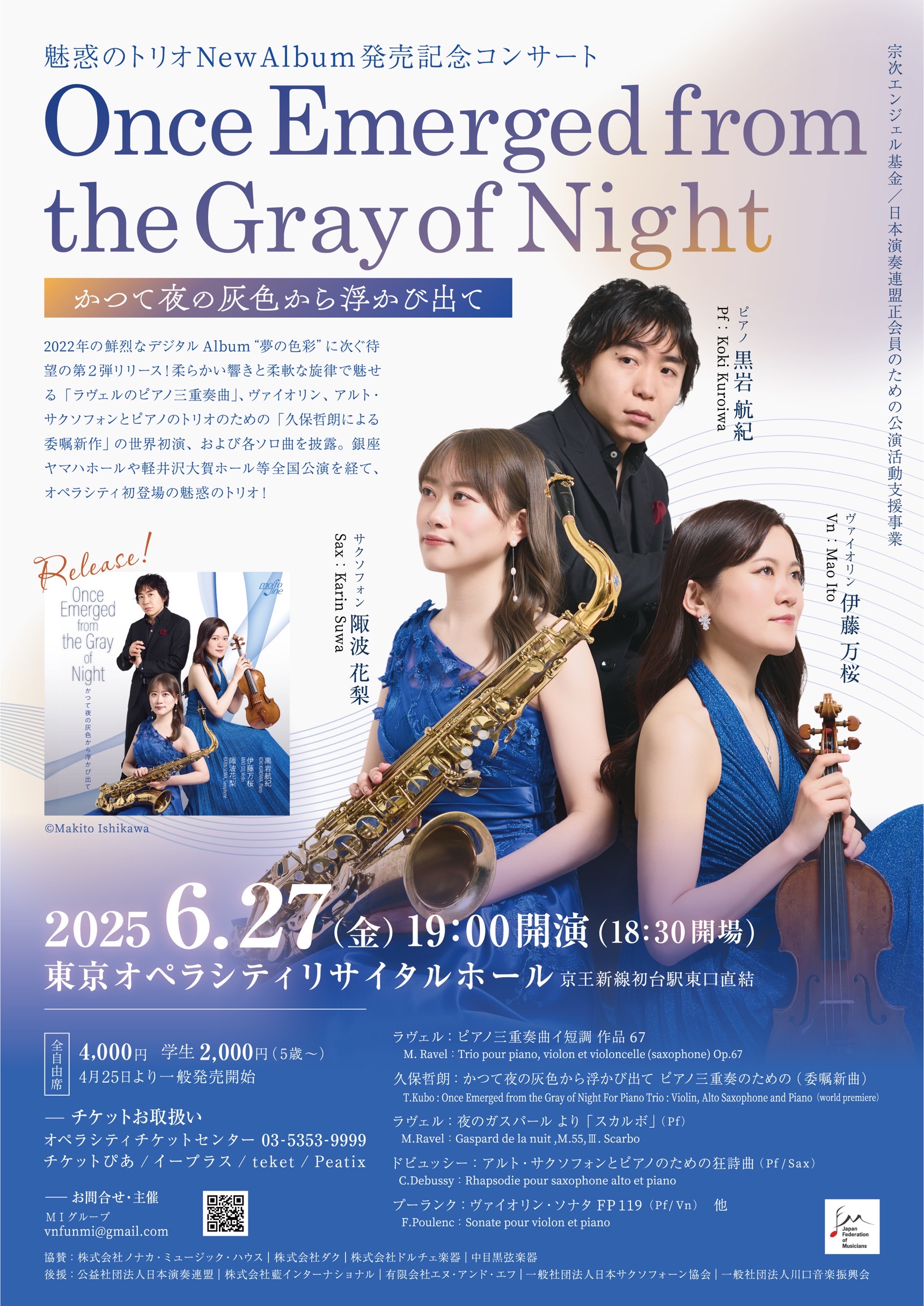 (編成例:サクソフォン4重奏、8重奏、サクソフォン+ヴァイオリン+ピアノ等)